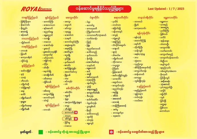 အခြား မြို့နယ်များကိုတော့ ဂိတ်ချ ဝန်ဆောင်မှုစနစ်ဖြင့် ပို့ဆောင်ပေးပါတယ်